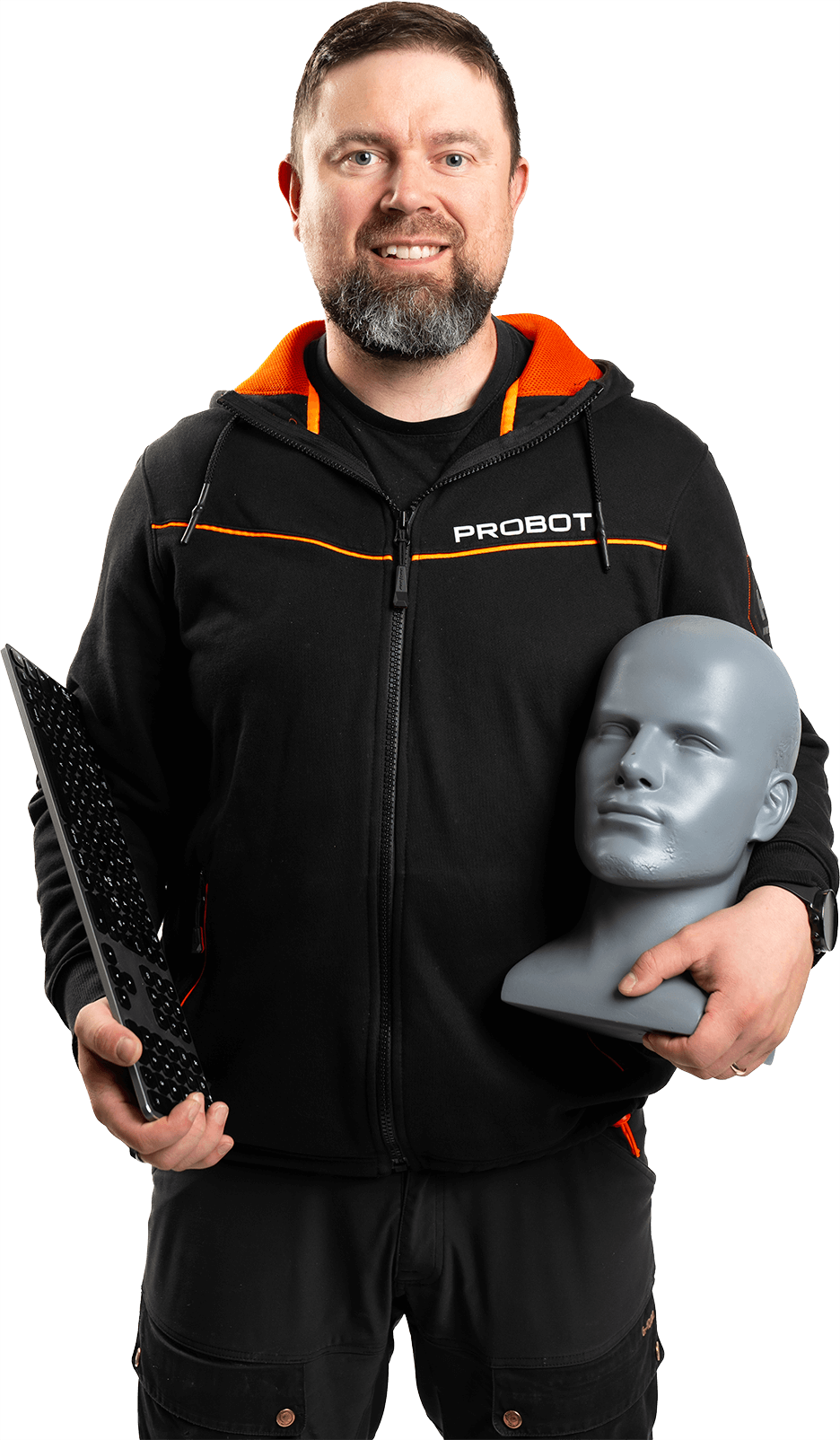 Neljä miestä, joilla on yllään Probot Oy:n mustat hupparit.